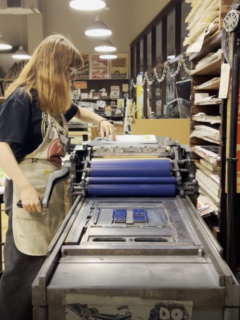 The goal of an Activation is to teach letterpress to the community with a hands-on experience, typically outside of a regular academic setting. HSP staff create a poster for guests to print on the press. For this design, I used two printing presses. The first and second layer was done on the SP 15,