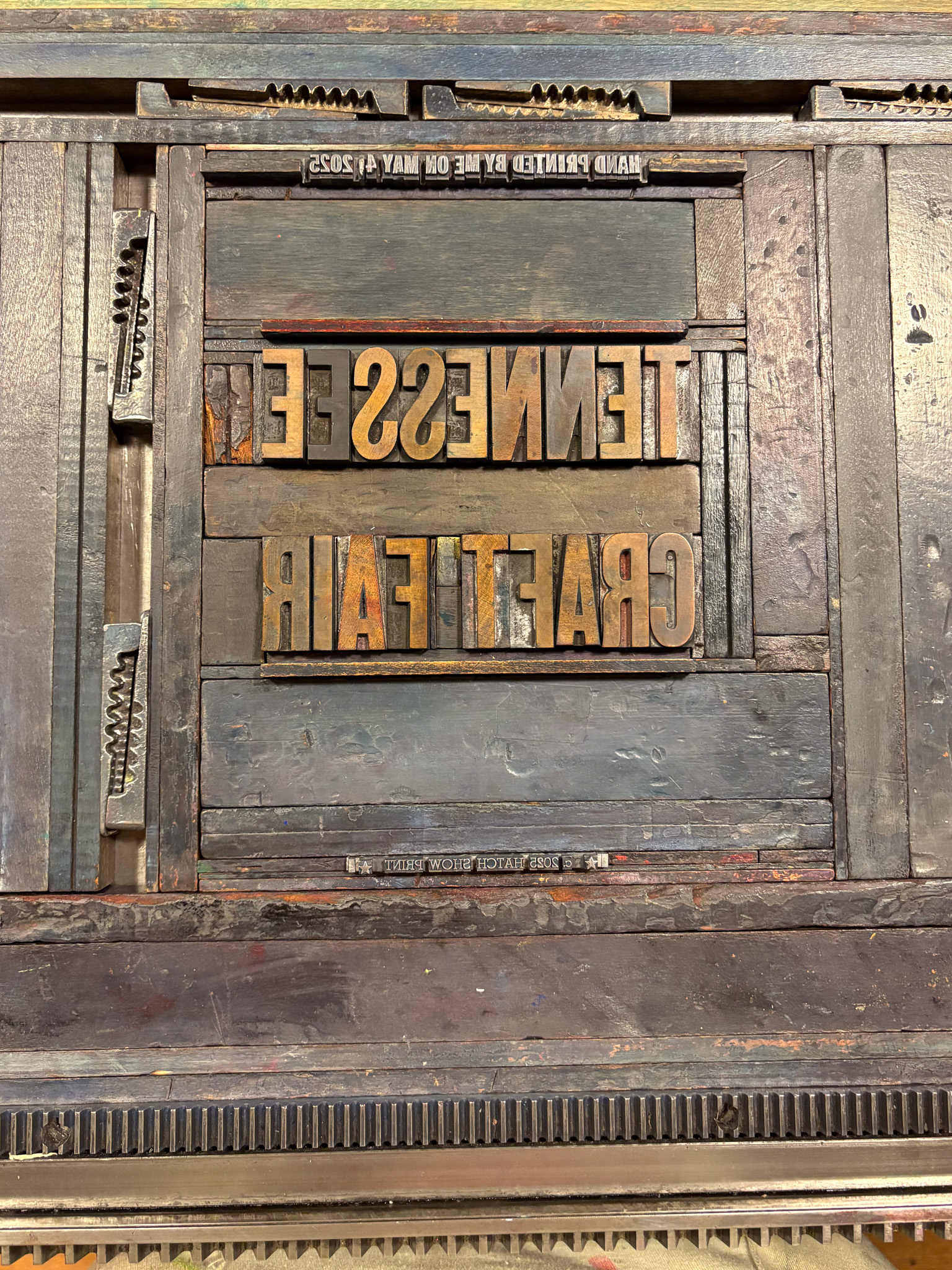 a press from the 1940s made for newspapers. The second, easily portable press is called the Nolan press. Used for mom and pop shops in the early 1900s, we now take this press to the activation site to use with guests. I printed the yellow layer with guests on May 04th.